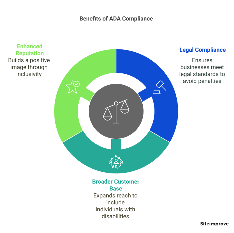 - Legal compliance: Although ADA Title II is for public entities, businesses can face legal challenges under ADA Title III, which covers public accommodations. Stores, restaurants, and hotels are public accommodations and therefore need accessibility features like ramps and accessible restrooms. Websites are a variation on a public accommodation, so they need to be accessible, too.
