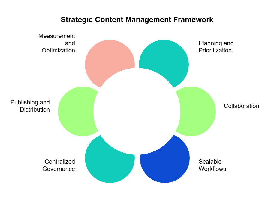 Strategic content management is about controlling the full content lifecycle. It brings structure to every part of the process, from planning and creation to governance, performance tracking, and optimization.