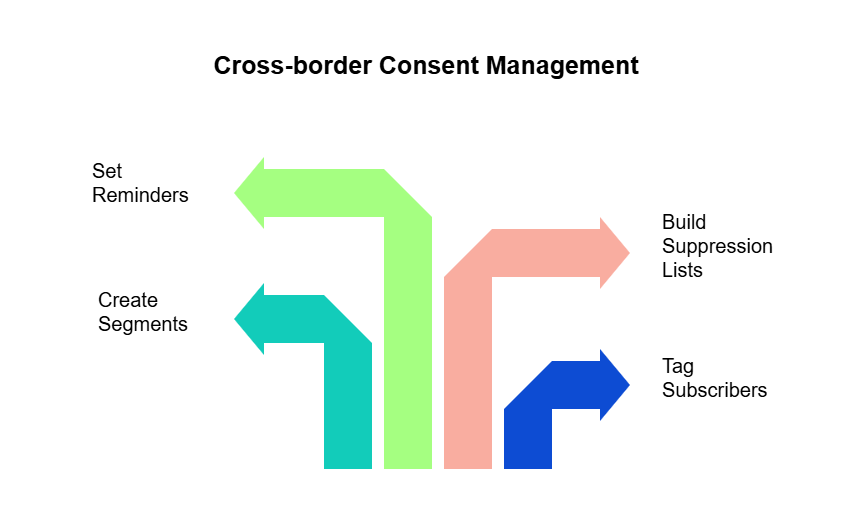 Consider consent management across regions. This is where many email programs fail. Different regions have different rules. GDPR requires specific consent language and deletion rights, CCPA has its own opt-out requirements, and industry regulations add more complexity.