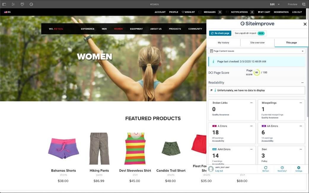 - Re-check pages instantly: The Siteimprove Plugin allows you to re-check your content immediately, so you can be certain that issues are resolved before you move on to other tasks.