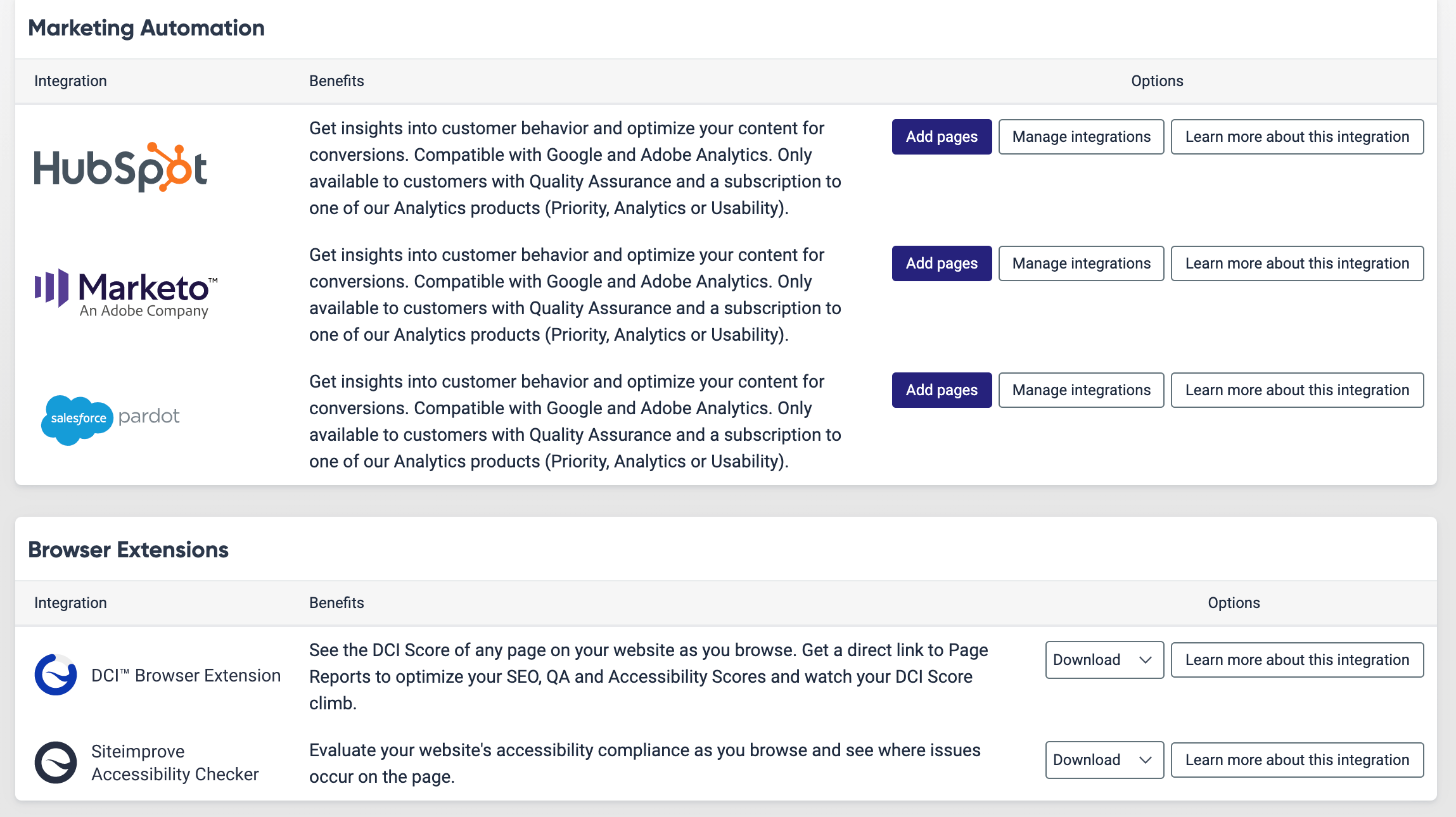Siteimprove Integrations enable your team to transfer data between platforms automatically without having to switch tools or sharing data manually.