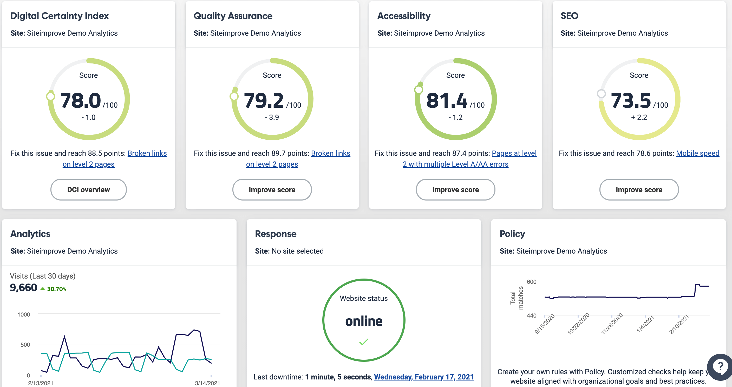 - Put analytics data to use straight away: With the Siteimprove Plugin, analytics insights are readily available to help you improve the user experience on each page.