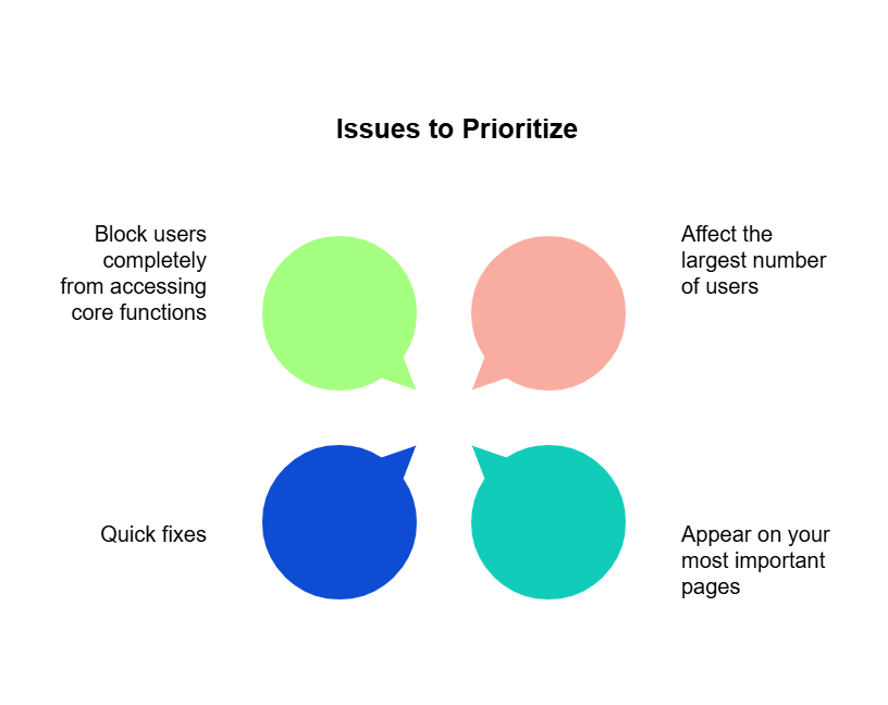 Next, prioritize fixes based on impact. Focus on issues that: