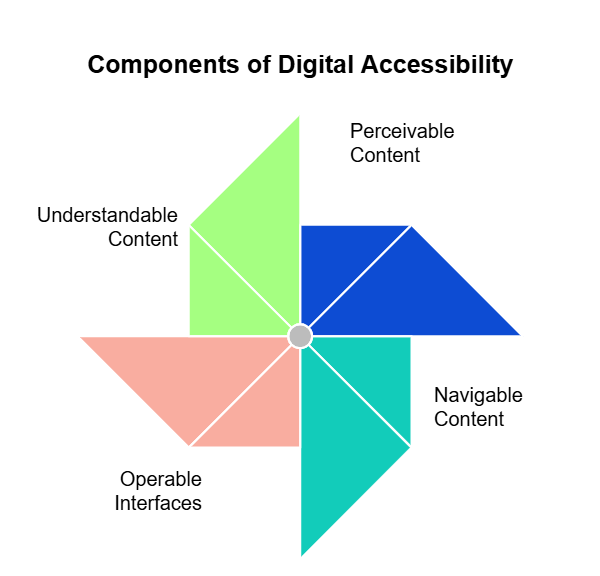 - Compatibility with assistive technologies: Content must work with screen readers, voice recognition software, and other assistive technologies.