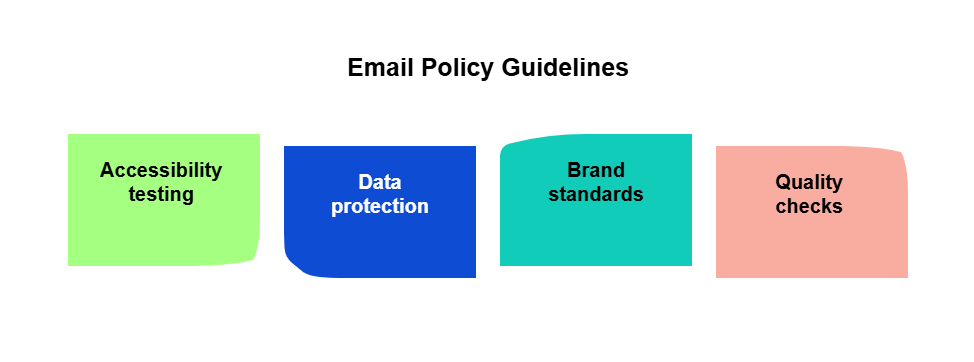 "Ensure quality" ranks among the most useless instructions ever written. Quality means specific things: email security protocols that protect your audience, HTML that renders in every major email client, and readability that matches your audience. Your policy should define these benchmarks with precision.