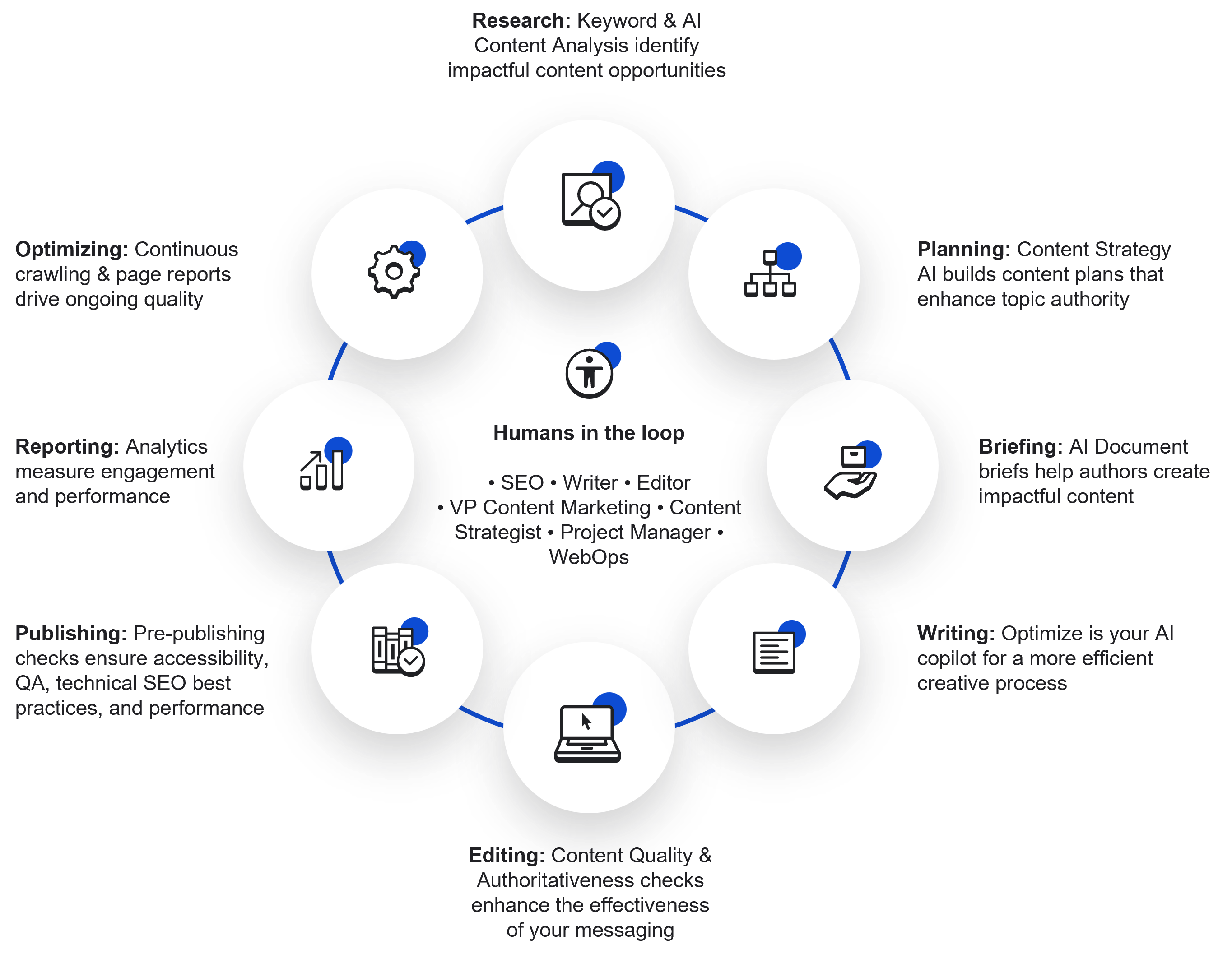 The challenge is harnessing AI as a force-multiplier for your team so you can accelerate research, optimization, and writing and still keep a skillful, badly needed human in the loop. That’s the only way to make sure your content shines and that quality, consistency, and credibility remain intact.
