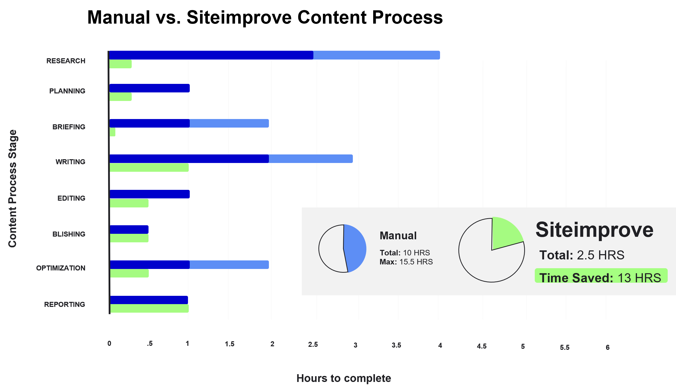 Customers have told us that the Siteimprove SEO Intelligence Suite doesn’t just shave off a few minutes here and there. It can shave off hours of time for everyone on their teams.