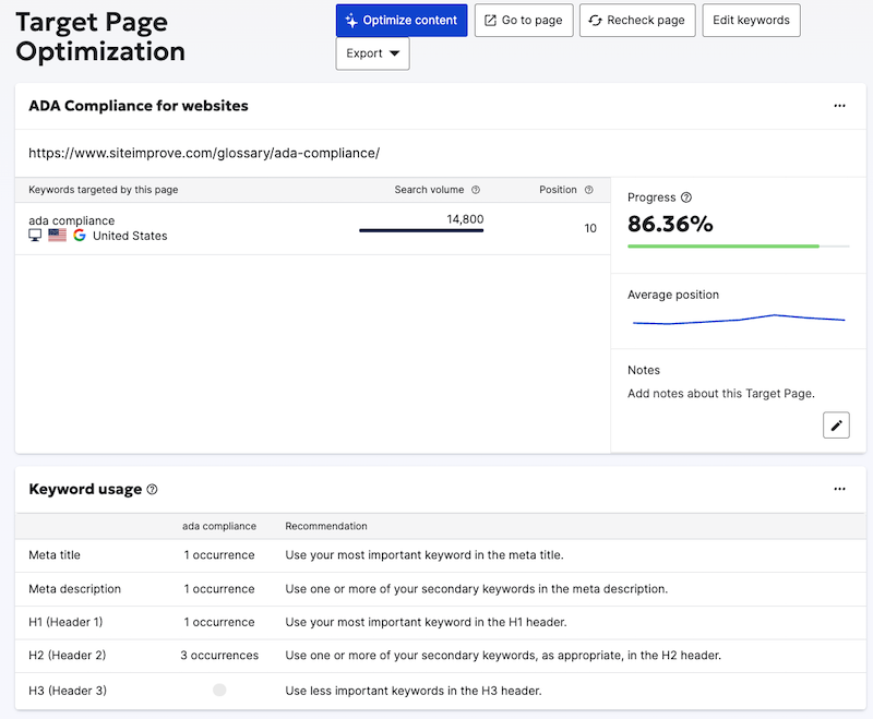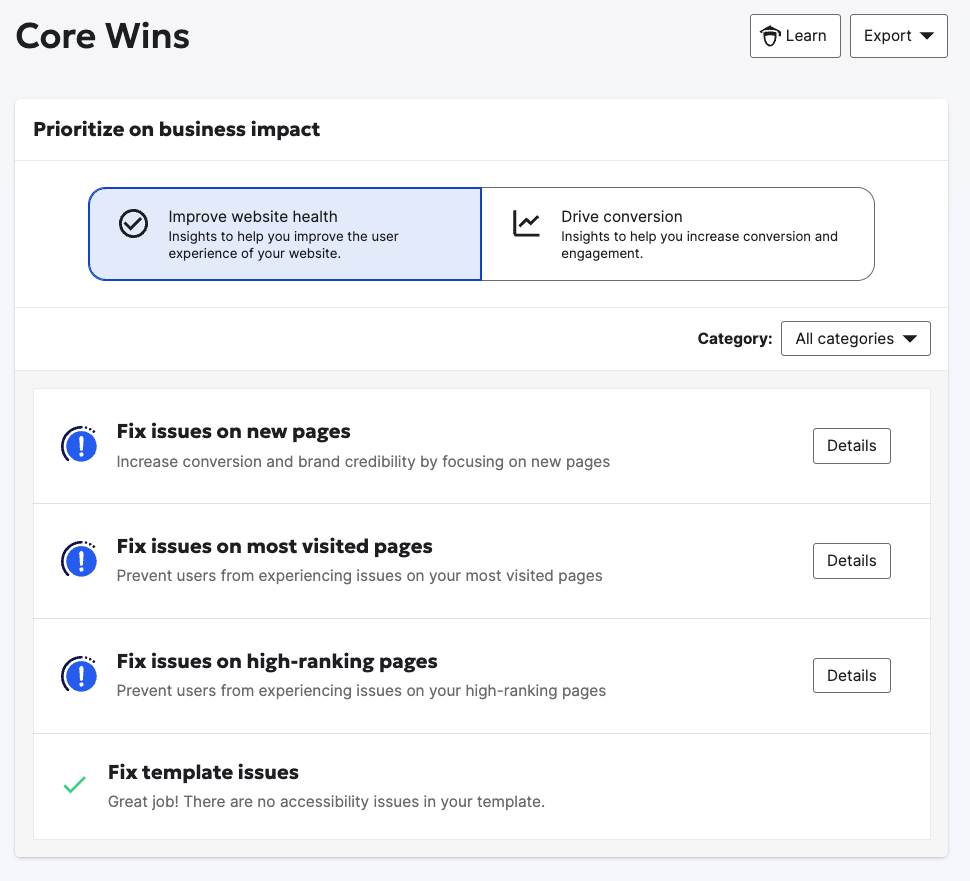 The foundational elements of good SEO and UX, like accessibility checks and technical diagnostics, are all there, too, so compliance and quality monitoring go on in the background.