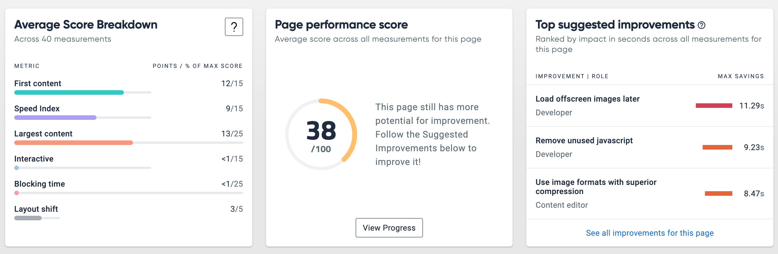 To improve your site’s user experience, you need to measure, track, and improve those metrics (LCP, FID, and CLS). Don’t panic, there are user-friendly tools available, such as Siteimprove Performance, that can help you easily track these metrics, improve user experience, and maintain the gains you make over time.