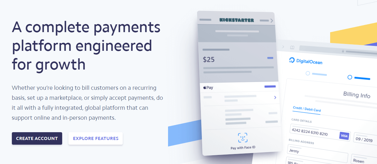 This landing page from Stripe is a great example. It’s relatively simple, giving just enough information to spark interest and providing two very clear options for visitors to take: “Create Account” for those ready to get started and “Explore Features” for those who want a little more information before jumping in.