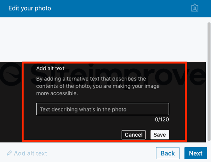 Even so, the site currently offers little information for users wishing to add descriptive text or other accessibility considerations to their own posts. In early 2019 some users noticed that it was possible to add alt text to LinkedIn images, but it appears that LinkedIn never announced the functionality, so not that many users are aware of it.