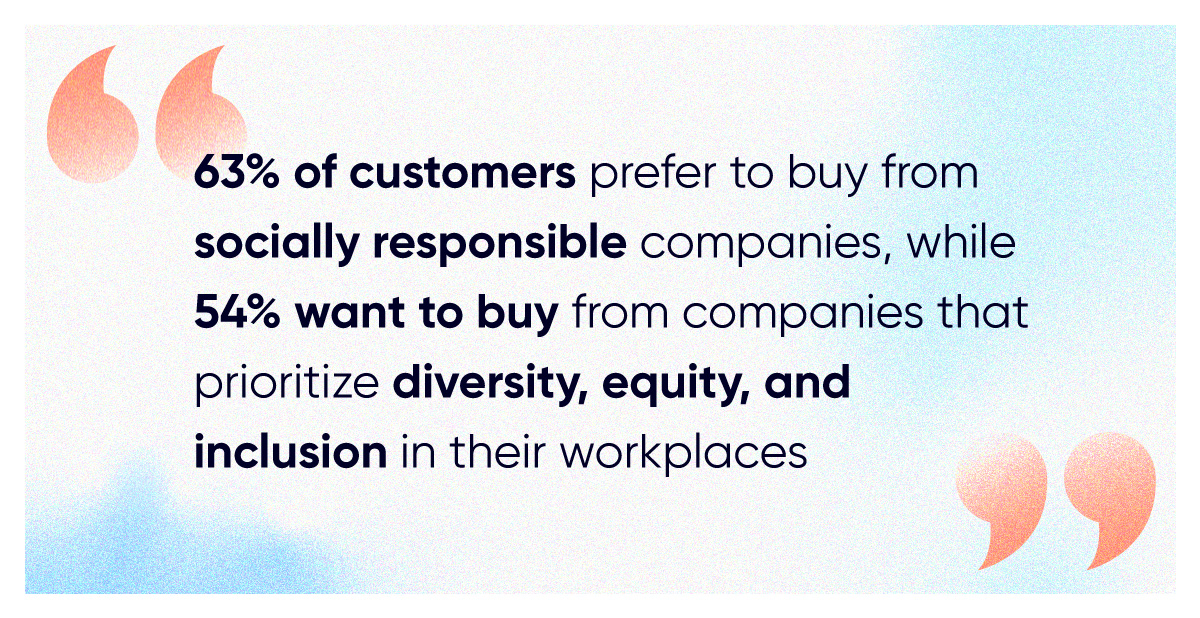 63% of customers prefer to buy from socially responsible companies, while 54% want to buy from companies that prioritize diversity, equity, and inclusion in their workplaces, according to Zendesk’s 2021 Customer Experience Trends Report.
