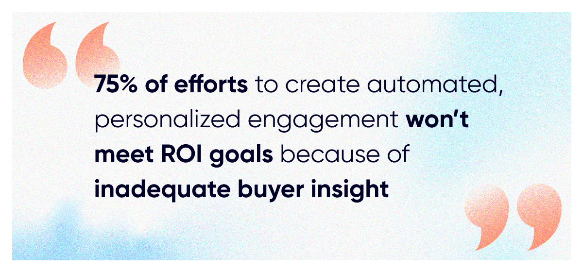 But even then, automation is not a set it and forget it process. Forrester's 2022 Predictions also predicts, “75% of [B2B marketers’] efforts to create automated, personalized engagement won’t meet ROI goals because of inadequate buyer insight.”