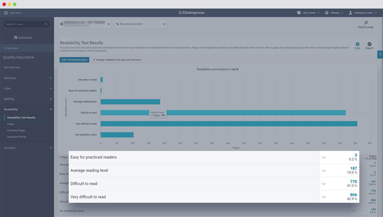 Step 2: Boost on-page readability. Create compelling, easy-to-read content that reflects your readers’ comprehension level using the Readability feature. Start by Identifying where page content is too dense, or difficult to comprehend, then adapt your copy to be more understandable and relatable to bring down your bounce rates.