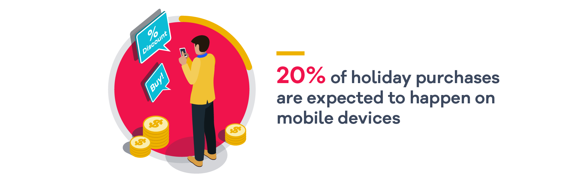 According to the 2019 Shopping Report, 20% of holiday purchases are expected to happen on mobile devices and over half of holiday shoppers report spending more than three hours on their phones every day.