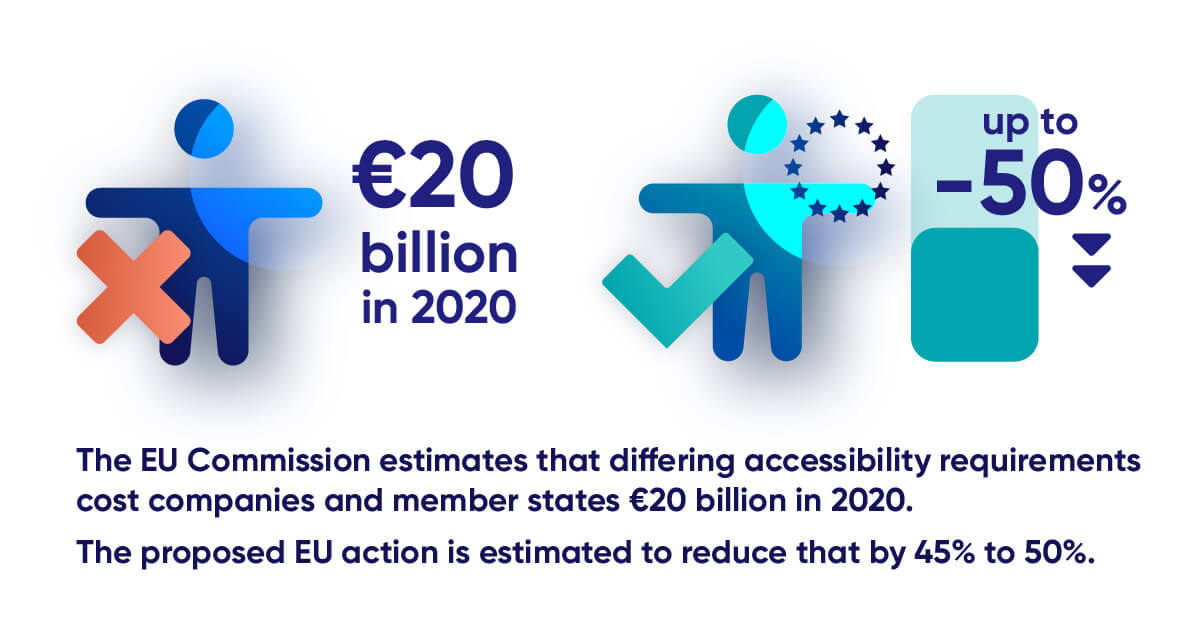 The EU Commission estimates that differing accessibility requirements cost companies and member states €20 billion in 2020. The EU action is estimated to reduce that by 45% to 50%.