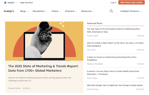 Both maintain the same font and HubSpot’s signature orange, including in the CTA buttons in the upper right.