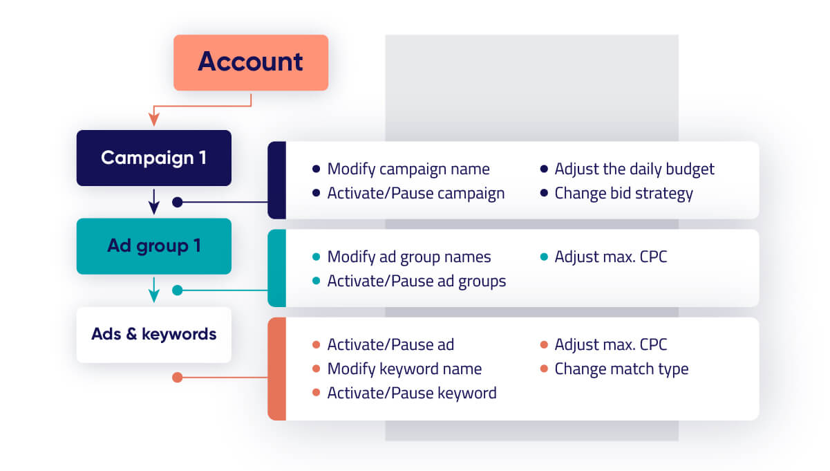 To understand how Siteimprove Ads real-time changes work, it’s helpful to understand how Google Ads is structured.