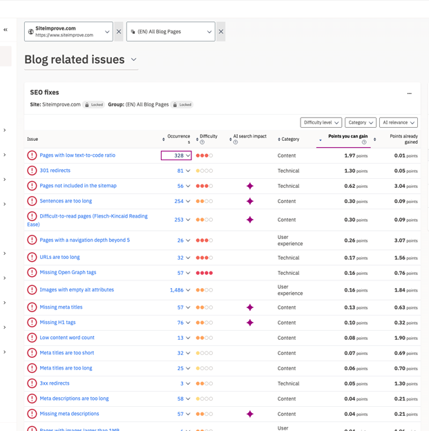 | SEO content “wins” are hurting readability | Use Siteimprove to balance ranking factors and UX in one workflow. | Keeps copy readable, accessible, and pleasant—for humans and search alike. |