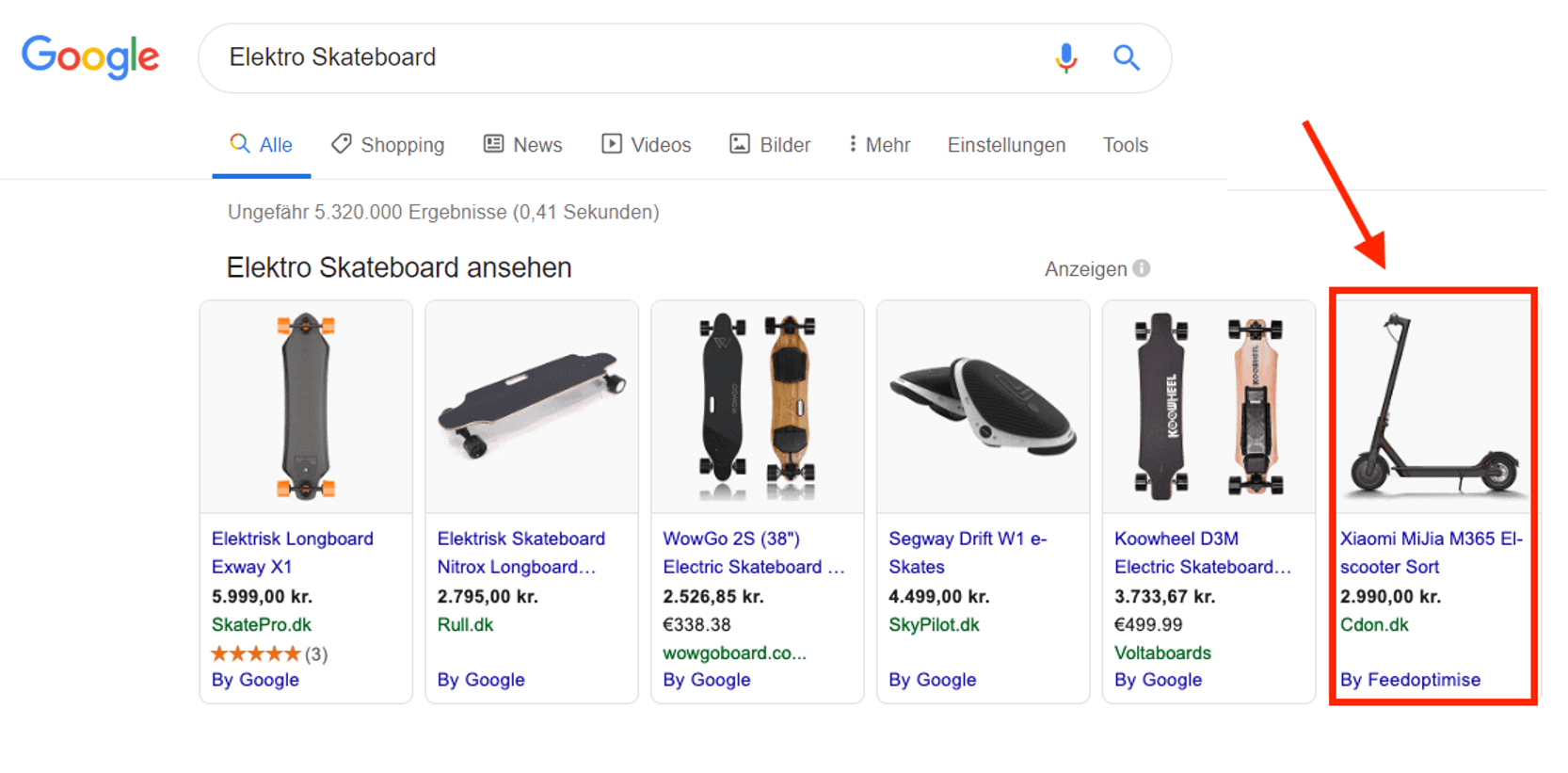 Genau so können Sie auch Keywords entdecken, für die Sie nicht möchten, dass Ihre Anzeige erscheint. Wenn Sie beispielsweise Elektro Skateboards verkaufen und die Keyword-Option "Weitgehend passend" aktiviert haben, könnte Google denken, dass es relevant ist, Ihre Anzeige auch für "Elektroroller" zu schalten. Diese verkaufen Sie allerdings nicht. Sie können dann "Elektroroller" zu Ihrer Liste von Keywords hinzufügen, die sie ausschließen. So müssen Sie nicht für Klicks aus irrelevanten Suchanfragen bezahlen.