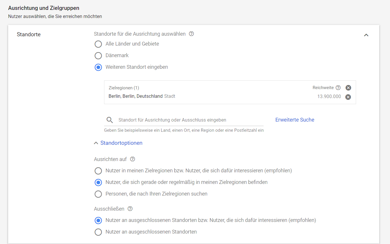 - Selbst wenn Sie nur online verkaufen, denken Sie darüber nach, wer Ihre Kunden sind und wo sie sich befinden. Verwenden Sie erweiterte Standorteinstellungen, um Ihre Zielgruppe besser anzusprechen.
