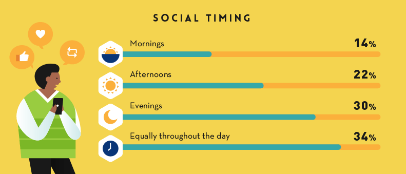 Die Grafik zeigt, zu welchen Tageszeiten Nutzer am häufigsten auf Sozialen Medien sind. Es ist ideal, Werbeanzeigen daran anzupassen. Zudem sollten Sie Ihre Marketingkampagnen nicht nur über mehrere mobile Plattformen hinweg integrieren, sondern auch die richtigen Plattformen auswählen.