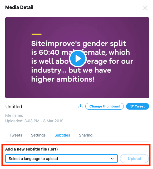 Im März 2019 kündigte Twitter an, dass Benutzer nun Untertitel zu Videos aus Twitter selbst heraus hinzufügen können, was ein großer Fortschritt für hörgeschädigte Benutzer sowie die Mehrheit der Benutzer, die Social Media-Videos ohne Ton ansehen, ist.