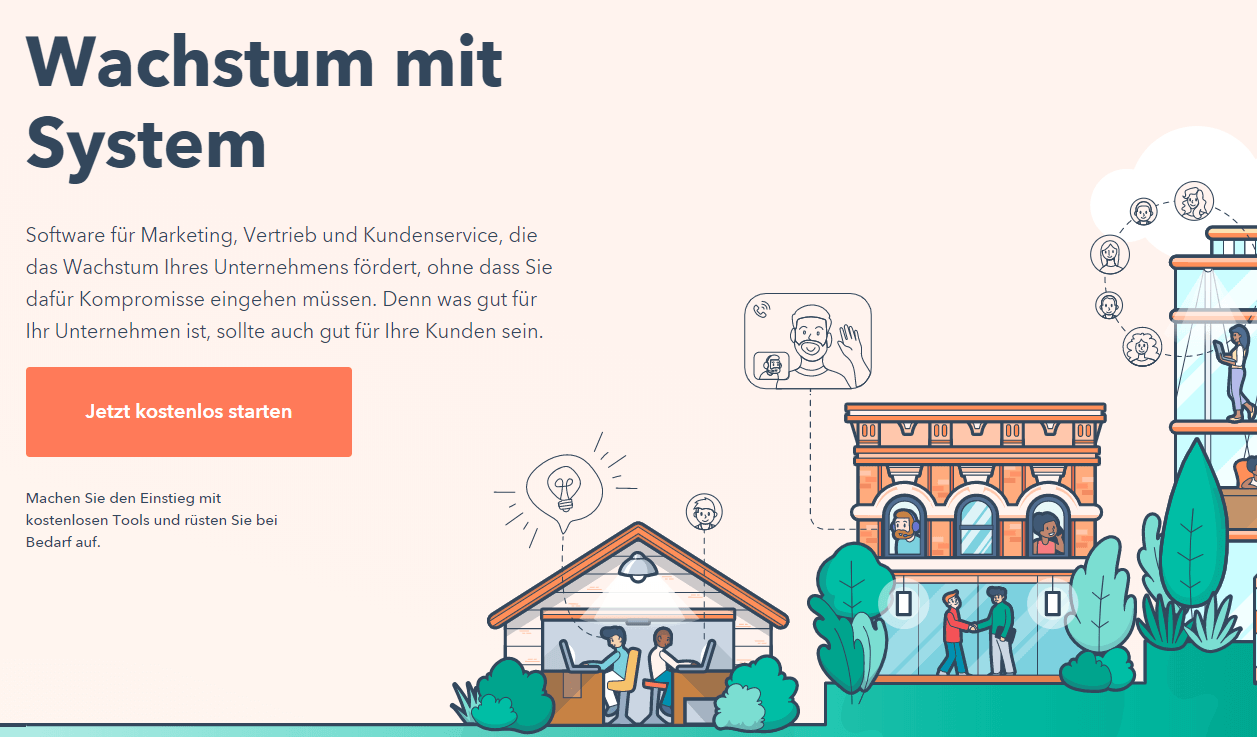 - Wenn Sie mehr schreiben wollen benötigen, nutzen Sie den Platz unter Ihrem CTA. Dieser Handlungsaufruf von Hubspot verwendet eine umsetzbare, klare Sprache, enthält aber auch die Hinweise "kostenlos" und "rüsten Sie bei Bedarf auf" unter dem CTA-Button um allgemeinen Ängsten, in eine teure Abo-Falle zu geraten, entgegenzuwirken.