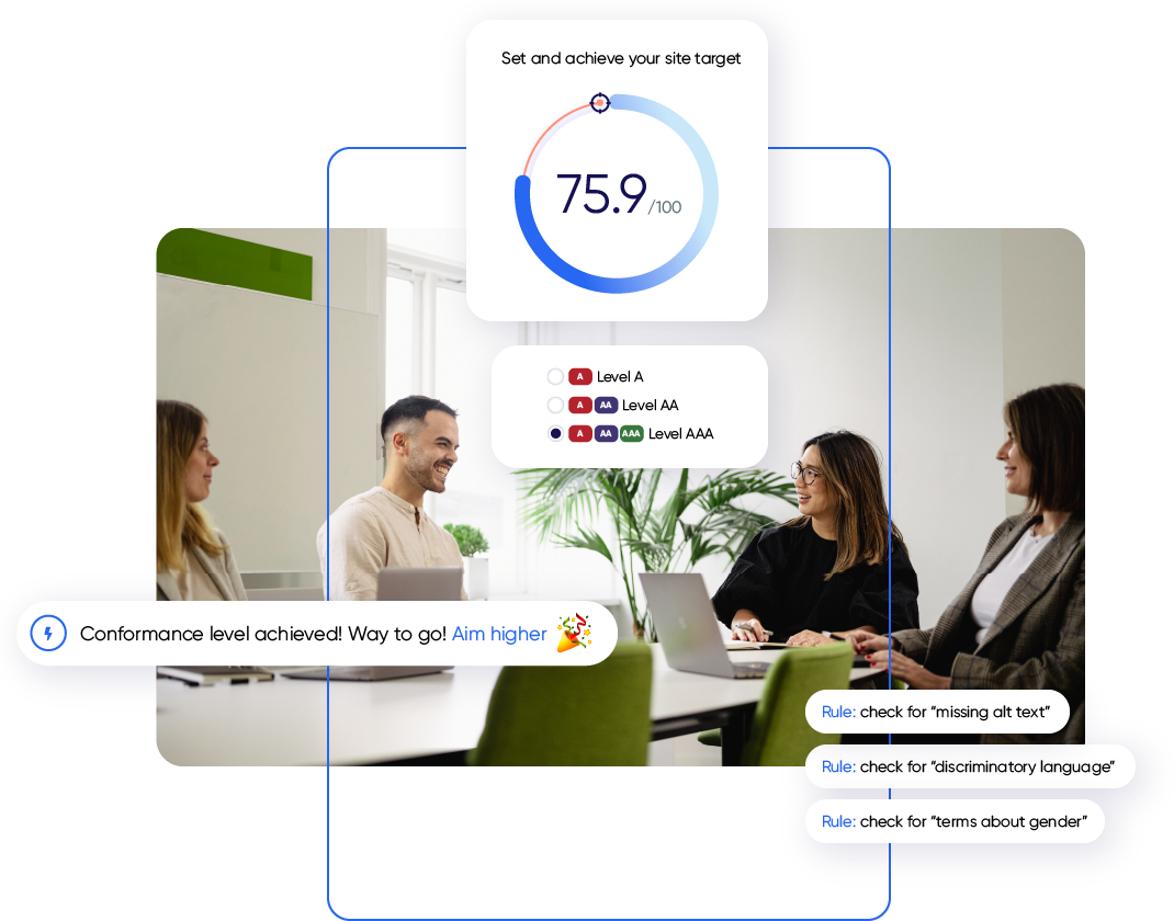 Siteimprove hilft Ihrem Team, hochwertige barrierefreie Inhalte zu erstellen und zu verwalten. Dies schützt den Ruf Ihrer Marke und mindert das Risiko von Verfahren und Bußgeldern aufgrund von Verstößen gegen gesetzliche Verordnungen.