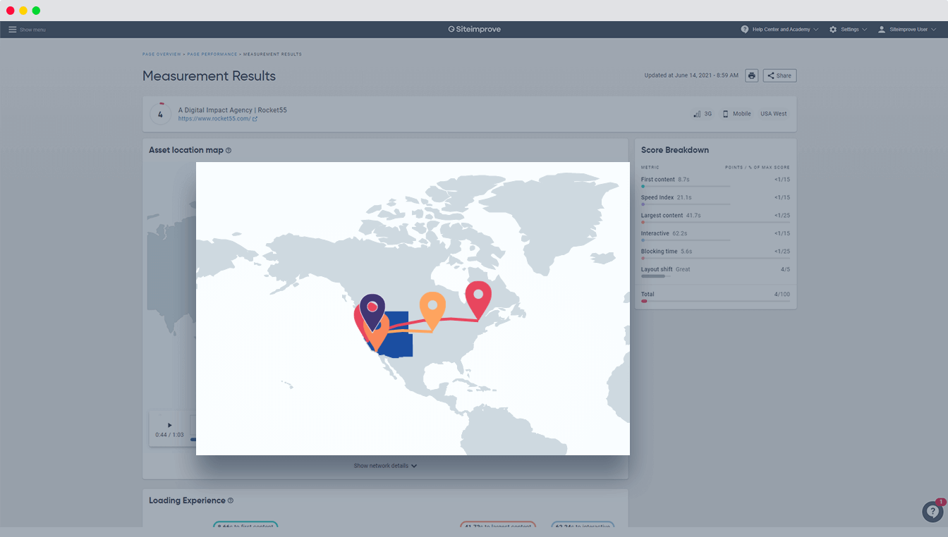 Nicht alle Performance-Probleme wirken sich gleichermaßen auf die Seitengeschwindigkeit aus. Sowohl die Anzahl von Elementen als auch die geographische Nähe Ihrer Besucher zu Ihrem Webserver spielen für Ihre Seitenladezeiten eine entscheidende Rolle. Mit Wiedergabevideos der Sessions sehen Sie, wie schnell unterschiedliche Elemente einer Seite für Ihre Nutzer geladen werden. Anhand einer Standortkarte der Seitenelemente können Sie erkennen, wo sich die einzelnen Elemente befinden, und sie auf Server in der Nähe Ihrer Besucher verlagern, damit sie schneller geladen werden.