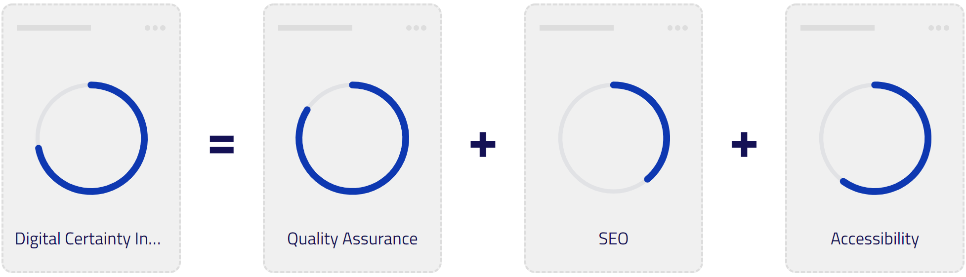 Siteimprove calculates your site’s performance using its “Digital Certainty Index” (DCI). This score is the main measure of your site’s quality and potential. Your total DCI Score is a combination of a trio of scores split across three sub-categories: