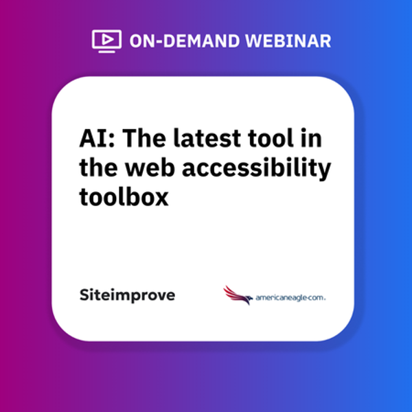 There’s no shortage of confusion when it comes to integrating AI into your accessibility strategy, but with the right tools, it’s a cinch: You’ll ensure that your site is accessible and save time along the way. Watch our on-demand webinar where experts from Siteimprove and our partner, Americaneagle.com share how you can leverage AI to efficiently optimize your site so that it’s fully accessible to everyone.