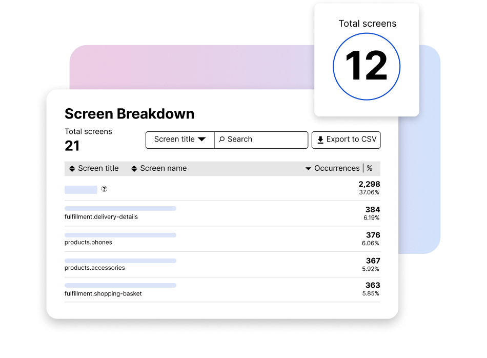 Track screen-level performance in mobile apps the same way you track page-level performance on the web, including views, clicks, and navigation.