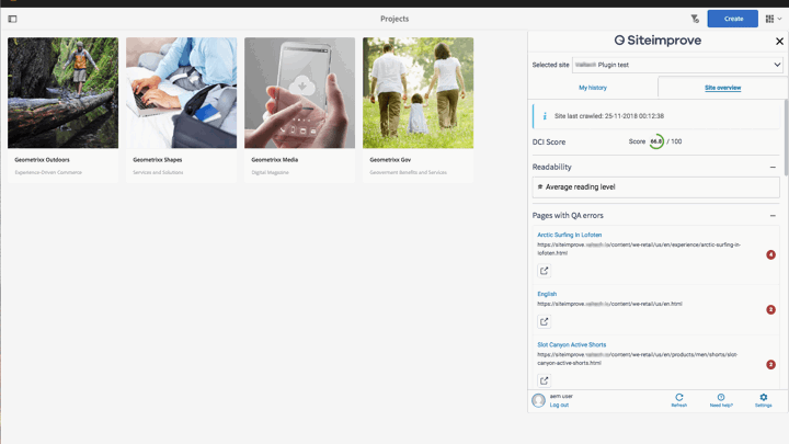 We are excited to help Adobe and Siteimprove bring the plugin to market. With the plugin, Adobe Experience Manager editors can easily access the Siteimprove data within the CMS, and act accordingly without switching between systems. In this first version of the plugin, users can access most of the Siteimprove features for the published content, which helps editors fix potential issues and thereby improving productivity and shortening time-to-market for any fixes.