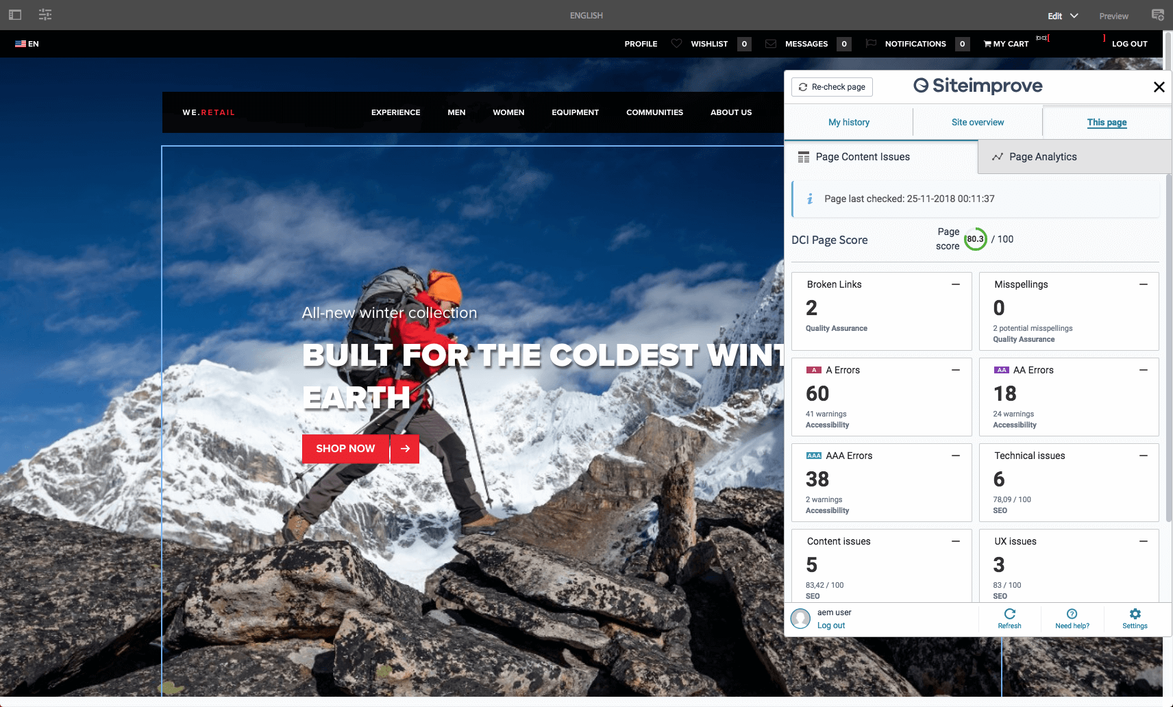 - How to navigate the New Siteimprove CMS Plugin - Available by default on version 3.0.0 of the AEM plugin.