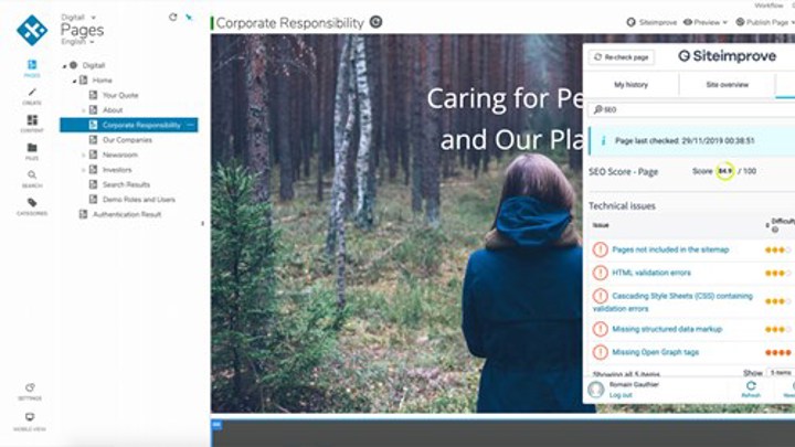The Jahia Siteimprove connector helps you perfect your digital presence by fixing and improving accessibility, SEO, content quality, and security issues. It allows business users to access Siteimprove relevant metrics straight from Jahia’s UI. That way, digital marketers, SEO experts or simple editors can easily implement Siteimprove recommendations directly into their websites.