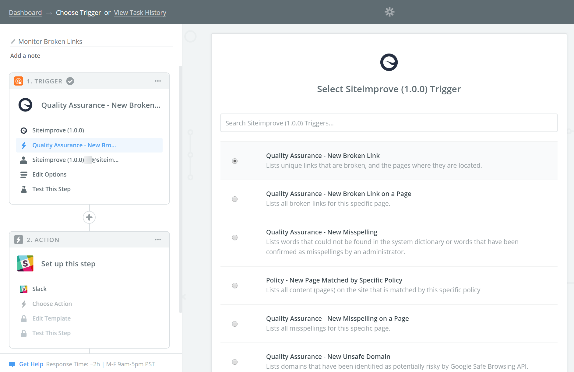 Currently, the Siteimprove Zapier integration is in Beta release.